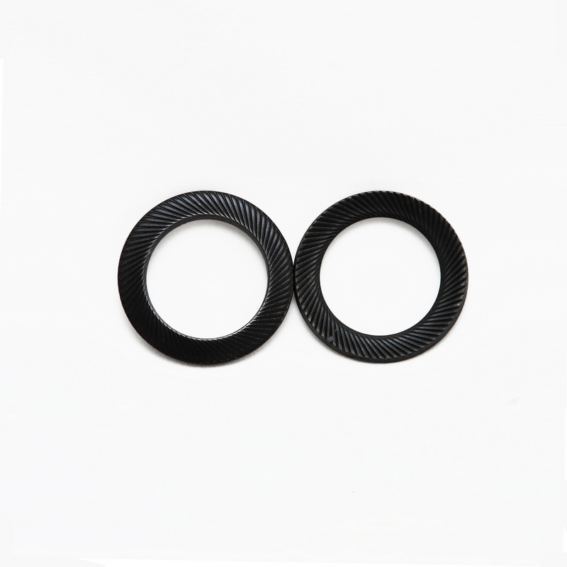 防松墊圈,全稱:齒面安全碟形防松墊圈(Serrated Safety Washers)。傳統(tǒng)墊圈是單片的墊片獨(dú)立工作的,這種墊圈主要依靠摩擦力來達(dá)到防松效果。